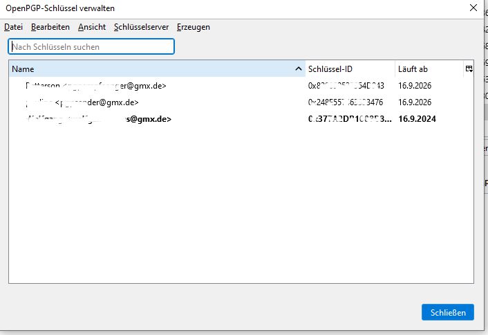 Als nächstes habe ich den gesicherten geheimkey importiert und ebenfalls die öffentlichen Keys meiner Kontakte.