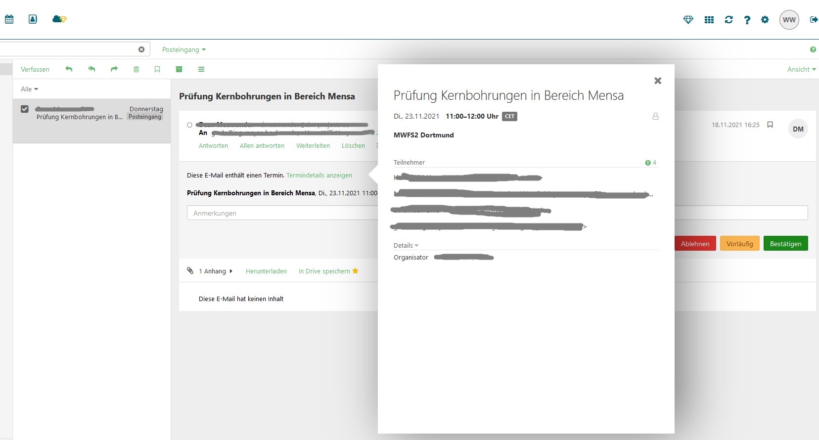 Meine Frage ist: wie kann ich die Termindetails vorab sehen, bevor ich die Einladung bestätige (ein blind date mag zwar ganz nett werden, aber dennoch...)?