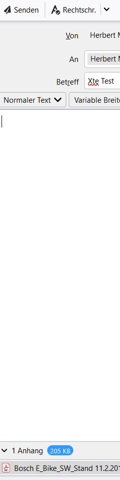 Hallo, ich bitte um Hilfe. Da ich weitestgehend Computerlaie bin habe ich auch Schwierigkeiten das Problems zu beschreiben. Für mich fängt das Problem mit dem benutzen des Forums schon an. Bin ich unter dem richtigen Teil des Forums? Bekomme ich eine Antwort wenn jemand auf meine Fragen antwortet? Vor kurzem hat noch alles wunderbar funktioniert. Da ich Thunderbird nicht jeden Tag benutze ist es mir erst jetzt aufgefallen wo ich ein wichtiges Dokument versenden wollte. Kann seit kurzem angehängte PDF Files vor dem Versenden nicht öffnen. Andere Anhänge lassen sich problemlos öffnen. Wenn ich vor kurzem Anhänge gedrückt habe standen sie unter Anhänge. Jetzt, wenn ich auf Anhänge drücke werden sie unten in eine Leiste gestellt. Öffne ich sie stehen sie unter Entwürfe. Schließe ich Entwürfe steht die Mail zum versenden. Unter Entwürfe stehen auch die anderen PDF Files die ich davor als Anhang eingestellt habe. Auch nach Google Suche komme ich nicht weiter. Gehe ich auf Allgemein und möchte auf Dateien und Anhänge scrollen bricht Thunderbird ab. Öffne ich Einstellungen wieder, steht die Anwendung auf Chat. Das Spiel kann unendlich wiederholt werden.