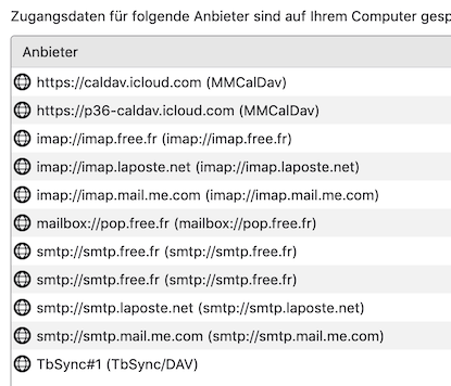 In meinem Fall fiel mir sofort auf, dass jeder Account doppelt angelegt war, was klar auf falsche User-Installation beim Rechner-Wechsel hinweist. Sowas kann selbst ein erfahrener Supporter nur durch gezielte Nachfrage herausbringen. Um in der verkorksten User-Administration nicht noch mehr Unheil anzurichten, machte ich von den Accounts und Passwörtern Screenshots, wodurch ich in einer halben Stunde 20 Accounts jungfräulich rein neu einrichten zu können. Garantiert ohne Altlasten.