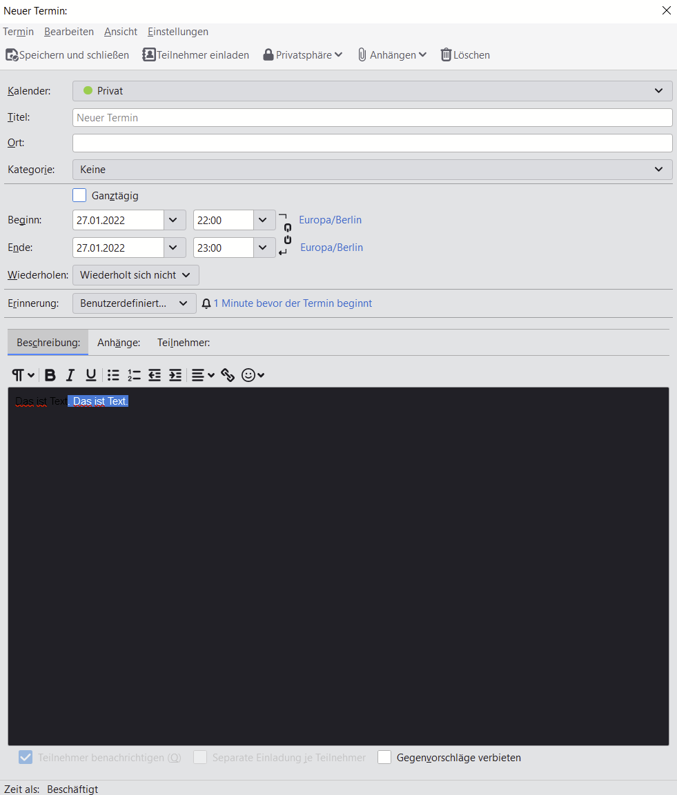 Nach Doppelklick öffnet sich ein neues Fenster. Statt der Beschreibung ist nur ein schwarzer Hintergrund sichtbar. Die eingetragenen Daten daher nicht erkennbar.