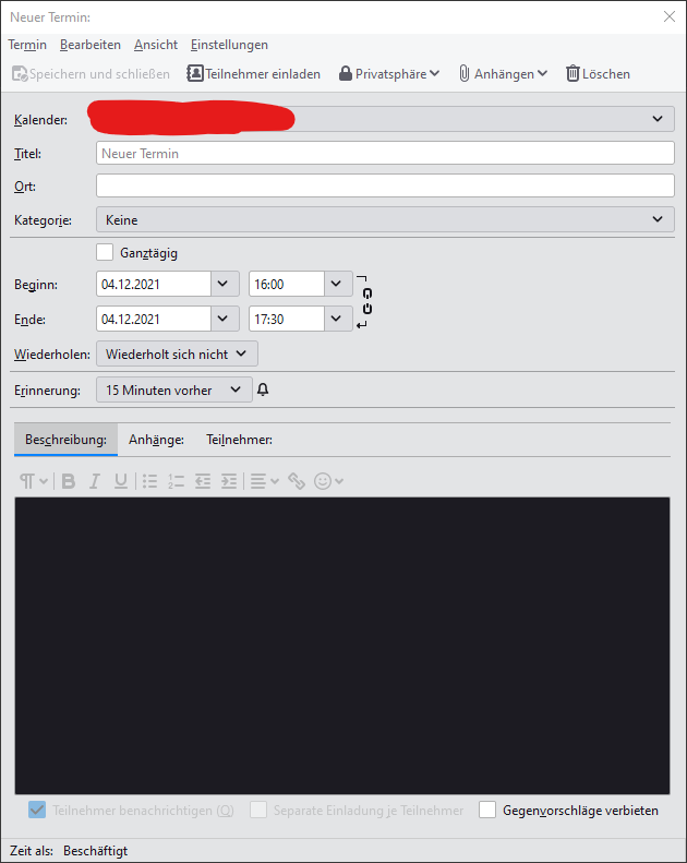 seit dem letzten TB Update werden bei mir die Editorfelder für Terminbeschreibungen, Anzeigefeldern von Terminbeschreibungen sowie die Platzhalterfeldern (wenn keine Mail angewählt wurde) von Emails in einem dunklen Grau angezeigt. Einen Thread dazu habe ich noch nicht gefunden und auch generell nichts passendes im Internet.