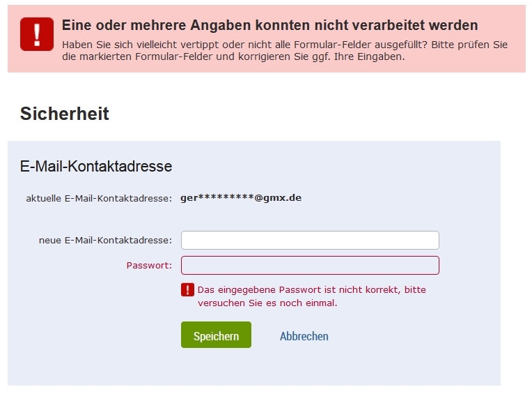 Habe es mit mehreren, existierenden Mailadressen versucht und jedes Mal die gleiche Fehlermeldung erhalten, dass das Passwort falsch wäre. Die Passwörter waren aber jedes mal 100% richtig. Wie kann ich denn nun meine E-Mail-Kontaktadresse ändern oder erfahren wie die Adresse ger*********@gmx.de denn überhaupt lautet. In meinem Account kann ich das an keiner Stelle einsehen.