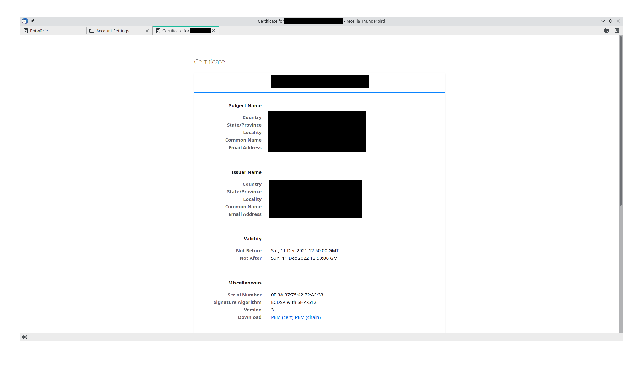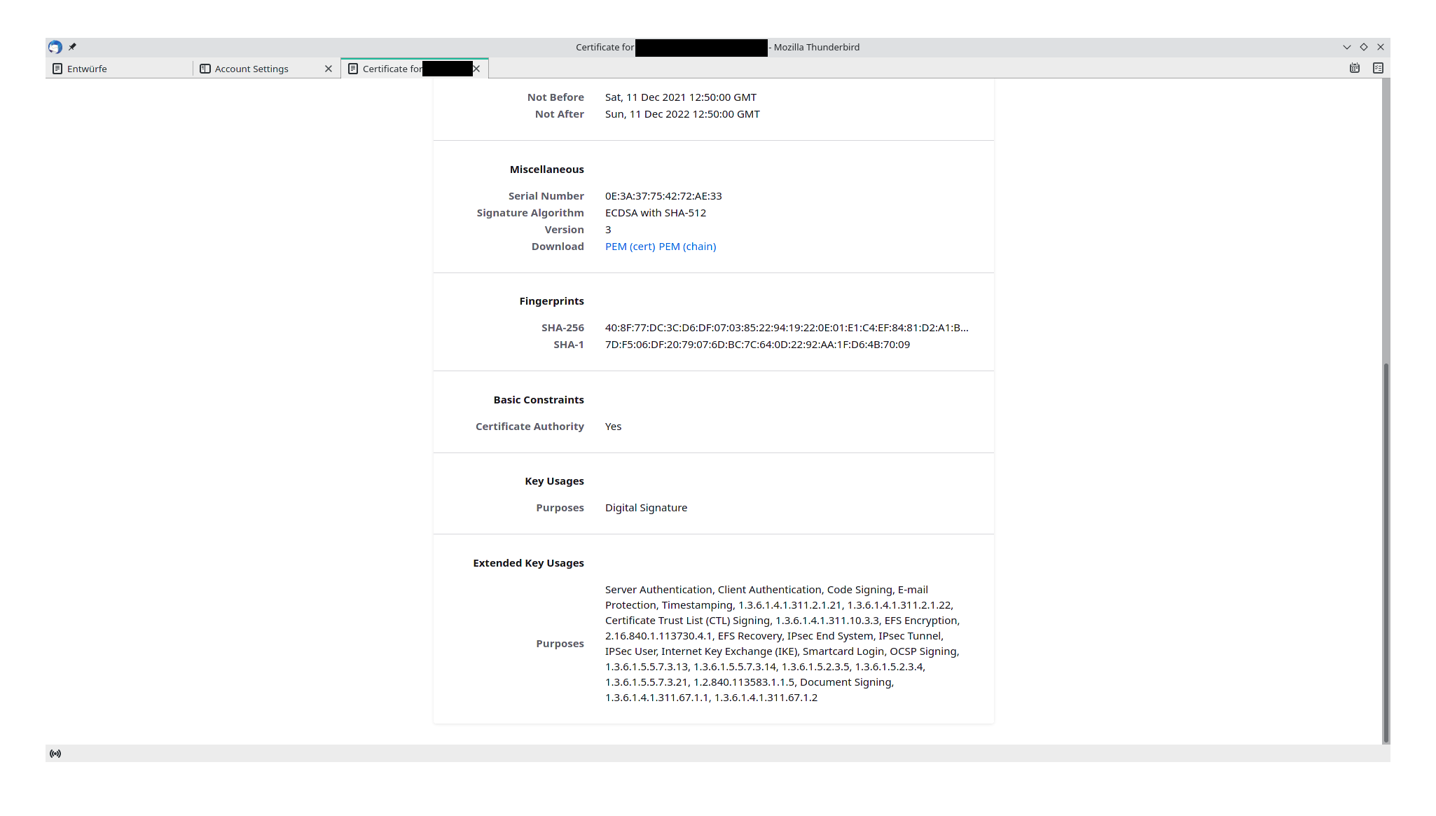 Wenn ich auf View gehe, sieht das Zertifikat wie folgt aus: