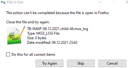 8. Fehlermeldung: einzelne Log-Files sind bei *Firefox* in Verwendung!! Hallo??? Firefox beendet, gelöscht.