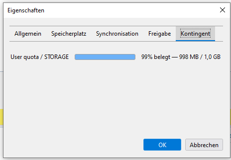 Da du schon das Eigenschaften-Fenster gefunden hast, hätte ich auch gern gesehen, was das Tab "Kontingent" an Überraschungen bringt,