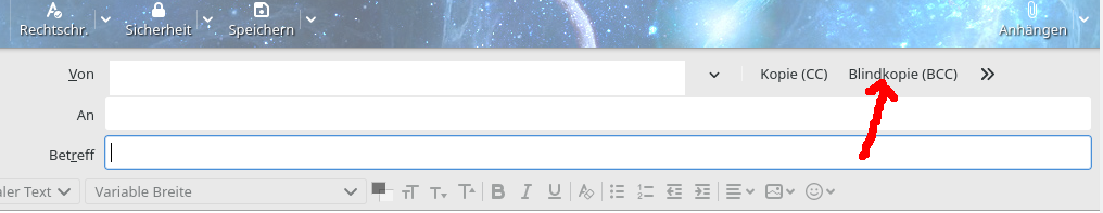 aufgabe: eine erstellte mailingliste in die adressdaten "bcc-zeile" kopieren....