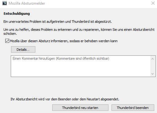 Nach dem Restore des aktuellen TB-Profils hatte ich auch alle meine Mails wieder, aber alle Kalender-Einträge und Aufgaben sind weg.
