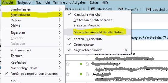 Nun waren die Mails in dem Ordner mehrzeilig, der beim Anhaken der Option ausgewählt war.