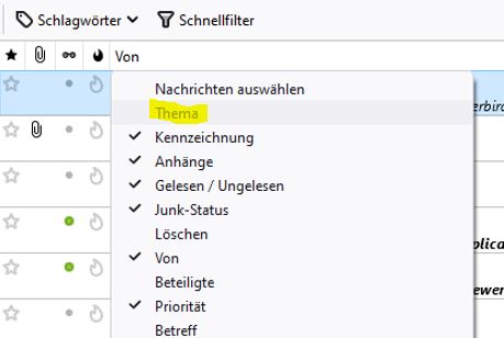 Leider ist die Darstellung der Mails aber in dem genannten Ordner immer noch mehrzeilig.