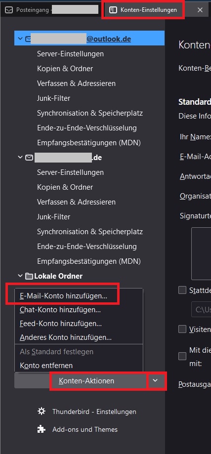 ich möchte ein zusätzliches Konto anlegen, allerdings von einem anderen Provider.