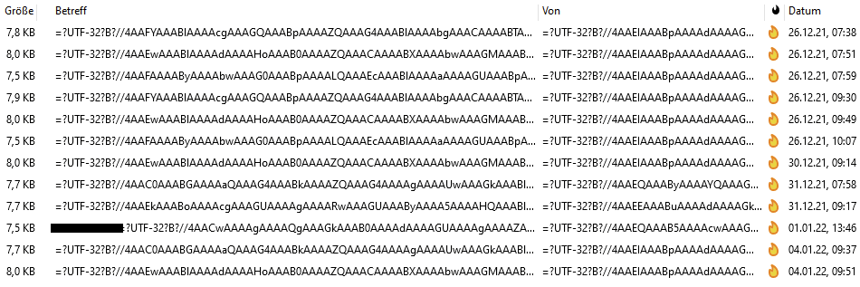 die Spammer haben eine Möglichkeit entdeckt den Spamfilter (und andere Filter) auszutricksen, indem sie den Betreff mit ?utf8... maskieren.