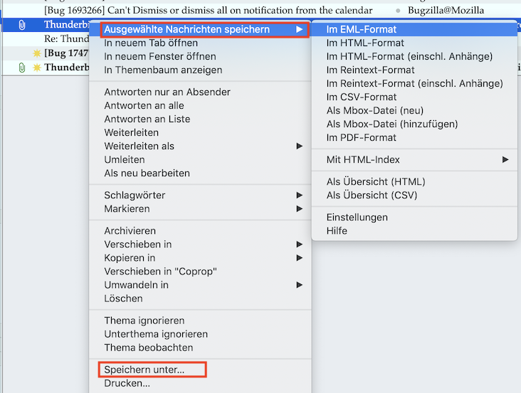 seit heute will Thunderbird 91.5.0 (war wohl ein Update bei meinem Mint) die Mails, wenn ich sie auf der Festplatte im Kundenordner speichern will, mit Absender, Datum und Uhrzeit versehen. Sehr unübersichtlich.