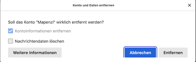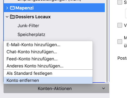 ich hatte hier immer ein GMX-Konto dessen Mails nur in den Lokalen Ordner verschoben wurden, ohne dass das Konto in der Kontenliste links aufgetauscht ist. In den Konteneinstellungen war es aber immer da. Ich hab das jetzt mal so angelegt, wie man es mit einem normalen eMail-Konto macht: Es taucht in der Kontenliste auf und gesendete und gelöscht Mails wurden im entsprechenden Ordner innerhalb des Konto gespeichert. Das war aber nur für ein paar Tests. Jetzt bekomme ich das Konto nicht mehr "weg". Es soll wieder so ein, dass hier zwar Mails angerufen werden, diese sollen aber alle im LO landen. In der Kontenliste soll das Konto nicht mehr auftauchen.