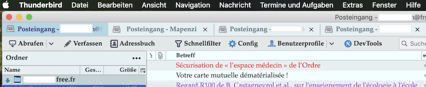 Nachdem ich einen Teil neu angelegt hatte, etwa 20 Accounts, warf ich dann doch mal einen Blick hinein ins Programm. Ich sah lediglich einen einzigen Reiter von einem Posteingang, doch wo sind die übrigen?