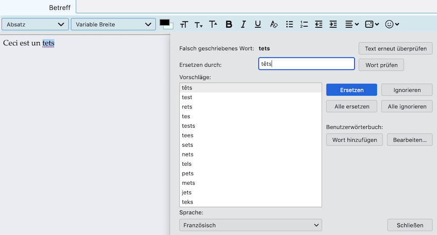 Die Rechtschreibprüfung unterstreicht nun jedes Wort, obwohl die richtige Sprache (deutsch) eingestellt ist, so als ob kein Wörterbuch existiert oder selbiges leer ist.