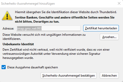 Und es geht um das Sicherheitszertifikat von was, von Thunderbird oder von GMX?