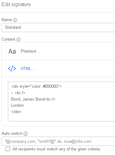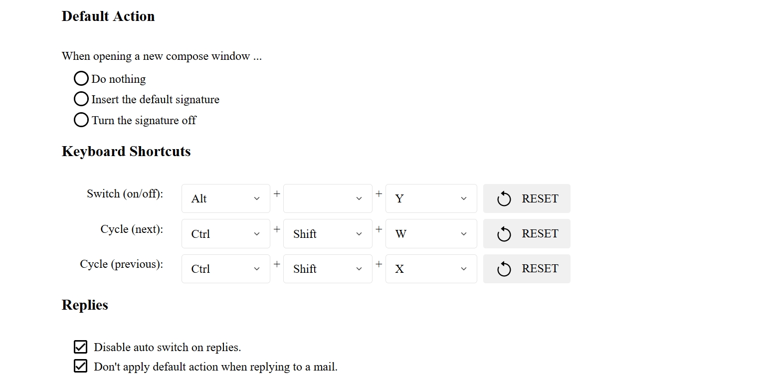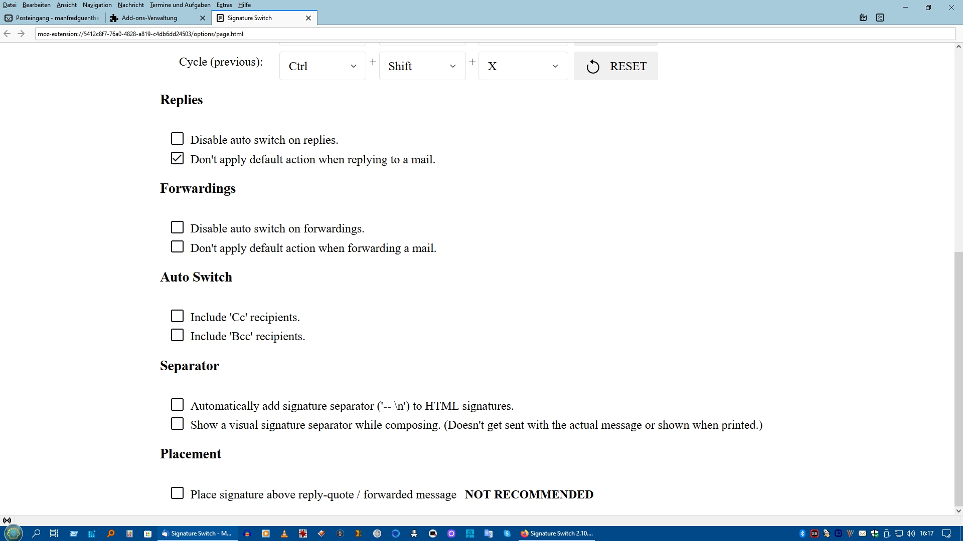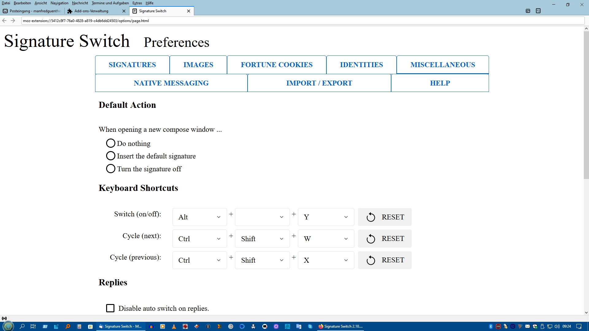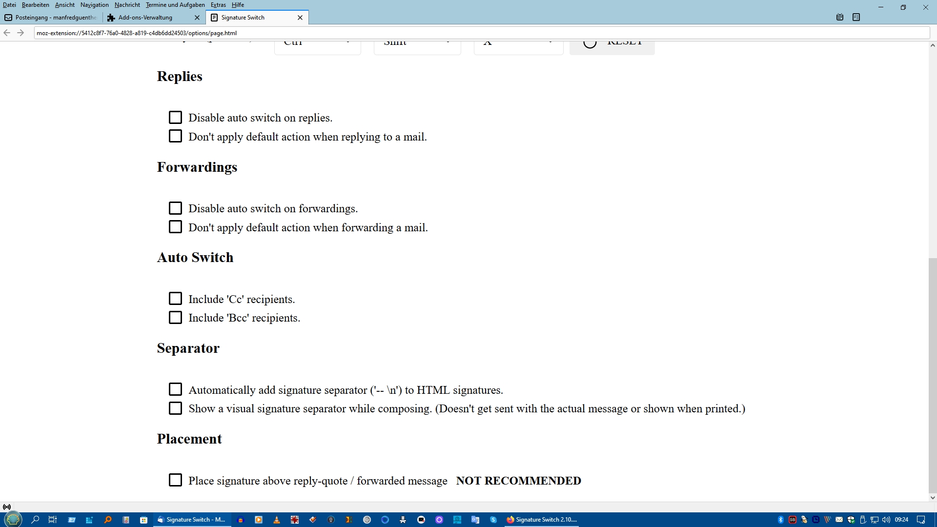 Ich habe versucht in den Einstellungen von Signature Switch das zu ändern, aber ohne Erfolg.