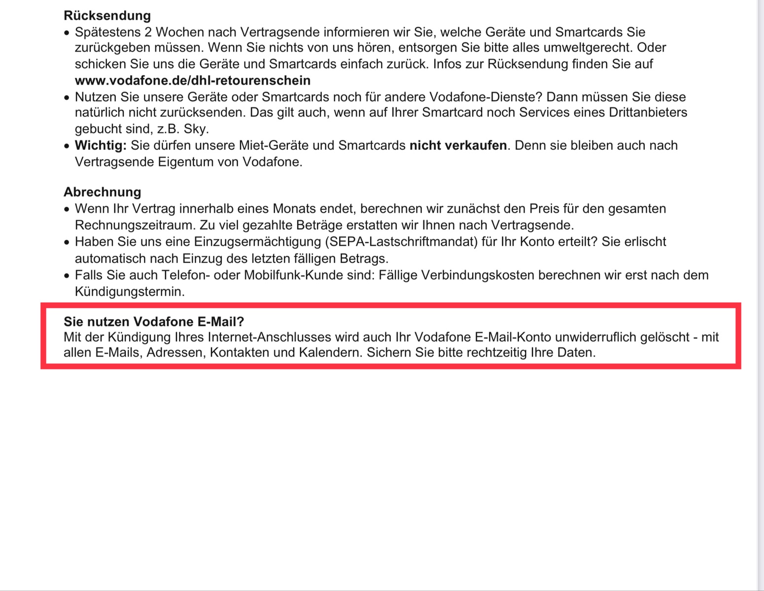 Jetzt ist dass Bestätigungsschreiben von Vodafone gekommen, und am Ende des Schreibens steht, mein Internet Account würde auch gelöscht.