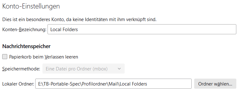 keine Anzeige/kein Zugriff von Thunderbird auf den "lokalen Ordner", dieser ist physich vorhanden