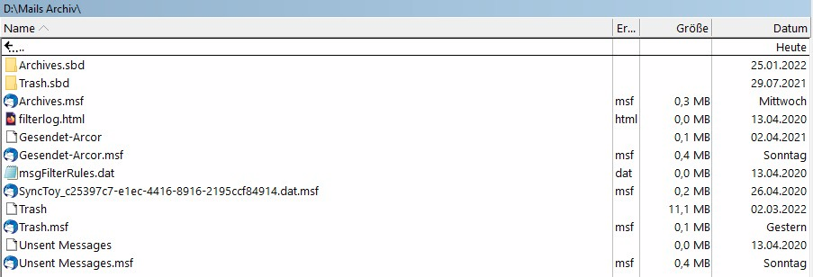 Ich habe gelesen, dass man die *.mfs Index-Datei löschen soll und sie wird neu generiert. Das habe ich ohne Erfolg (in D:/Mails local) versucht.