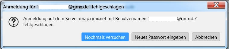 Paßwörter sind aber korrekt, da ich damit bei GMX ohne Probleme reinkomme.