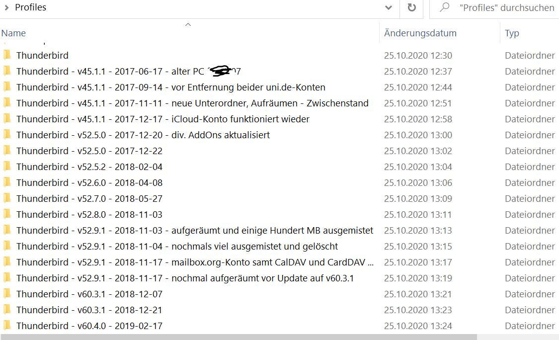 Mit meinen Backups des Laptops und der NAS will ich das dann noch sichern.