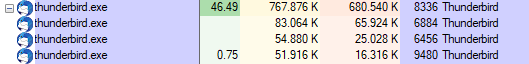 Thunderbird wird für mich zunehmend unbrauchbar. Das Verhalten mit der periodisch ungesunden Last ist seit Jahren bekannt und gut dokumentiert. Ich kenne das Problem seit langem und habe früher schon mail.db.idle_limit hochgesetzt. Auch habe ich schon diesbezüglich einen Thread eröffnet und bekam den Rat, im abgesicherten Modus zu arbeiten, was für mich nicht in Frage kommt.
