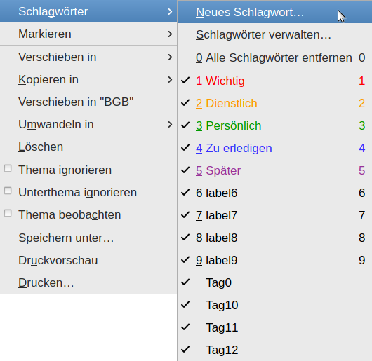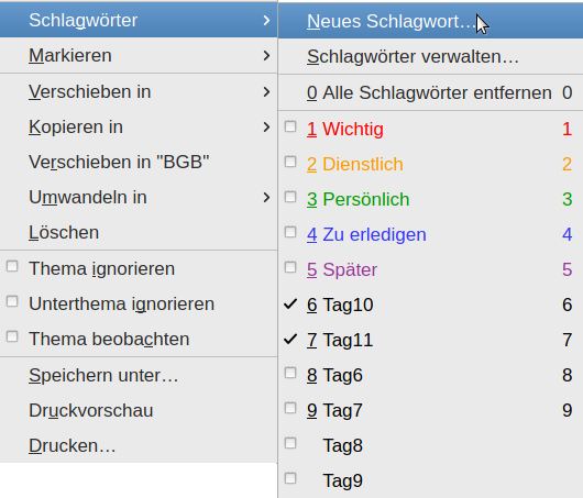 (Wenn man ein neues Schlagwort definiert, erscheint das übrigens erst dann in der "Verwalten"- Liste, nachdem TB neu gestartet wird.)