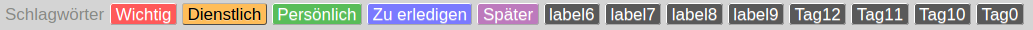 Beispiel: Zusätzlich zu den 5 Standard-Schlagwörtern habe ich 'Tag6' bis 'Tag11' hinzugefügt. In der Übersicht sieht das dann so aus: