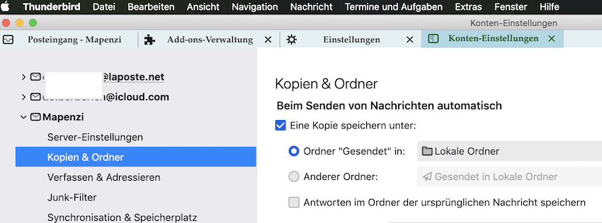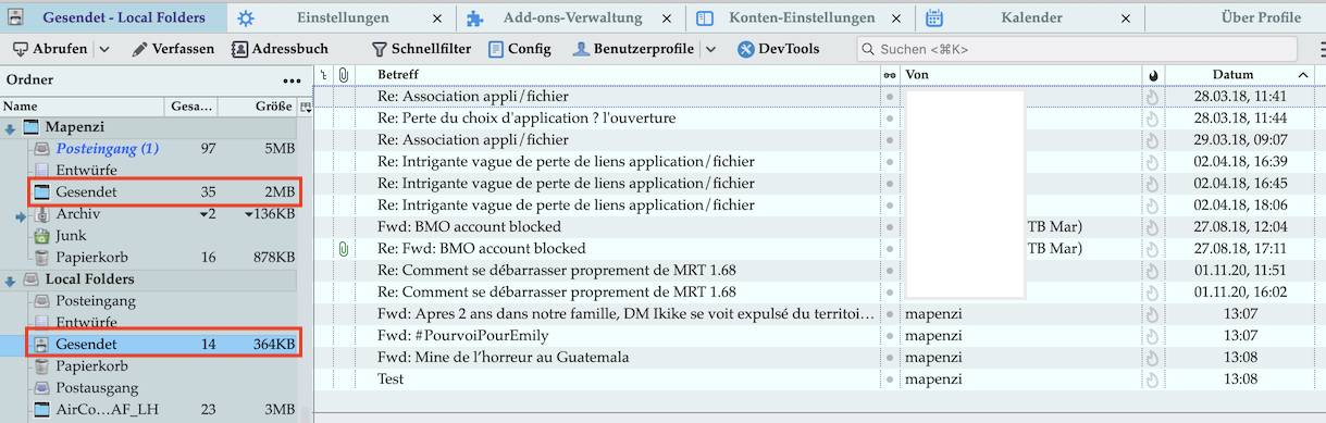 Jedoch ist zu unserem Erstaunen die Testmail nicht in dem lokalen Gesendet Ordner, aber auch nicht im IMAP Gesendet Ordner... Einfach futsch.