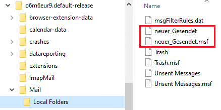 Insgesamt kann man Gesendet, Archiv, Entwürfe und Vorlagen auf den lokalen Ordner "umleiten" , also müßten die Dateien ordner sent, archives, drafts und templates zu finden sein... Oder nicht? Evtl. müßte ich mir das auf dem PC des Kollegen noch mal anschauen.