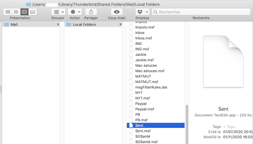 Jedenfalls sehe ich keinen "sent.sbd" und auch nicht "sent" ... Inwieweit Dateien ohne Erweiterung systemmäßig ausgeblendet werden, weiß ich momentan nicht, könnte sein...