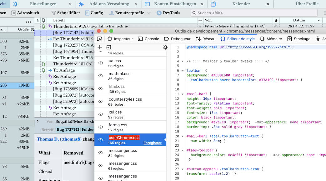 Gibt es eine Möglichkeit auf der Hauptseite von Thunderbird die Schriftart und -Grösse zu verändern?