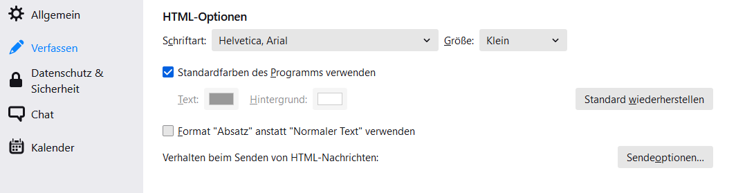 Ich habe keine Möglichkeit gefunden, die Schriftgröße in gesendete Nachricht der Schriftgröße anzugleichen, welche ich in Verfassen der Nachrichten eingestellt habe.