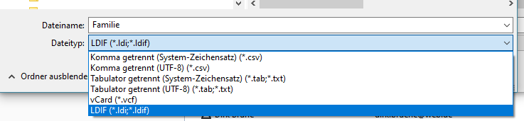 Dann in dem Klappmü unten den Dateityp auswählen, von TB zu TB Transport am besten als LDIF.
