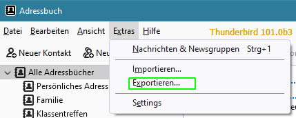 TB 100.0b4: Backup des Adressbuches in csv-Dateien nicht mehr möglich?