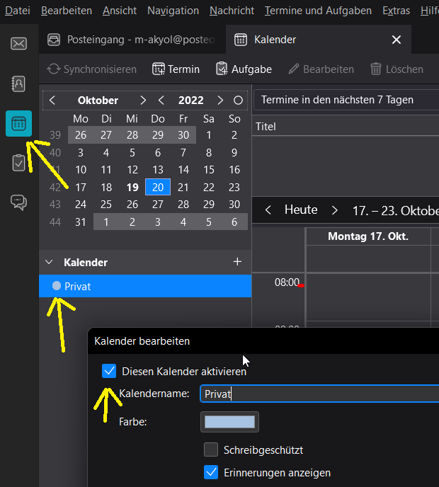 Im Forum habe ich dann gelesen, dass der Kalender mit der E-Mail-Adresse verbunden sein muss. Ich habe dann im Kalender "iCloud_xxx" meine private E-Mail-Adresse durch meine geschäftliche E-Mail-Adresse ausgetauscht. Für den bereits erhaltenen Termin hat sich nichts geändert.