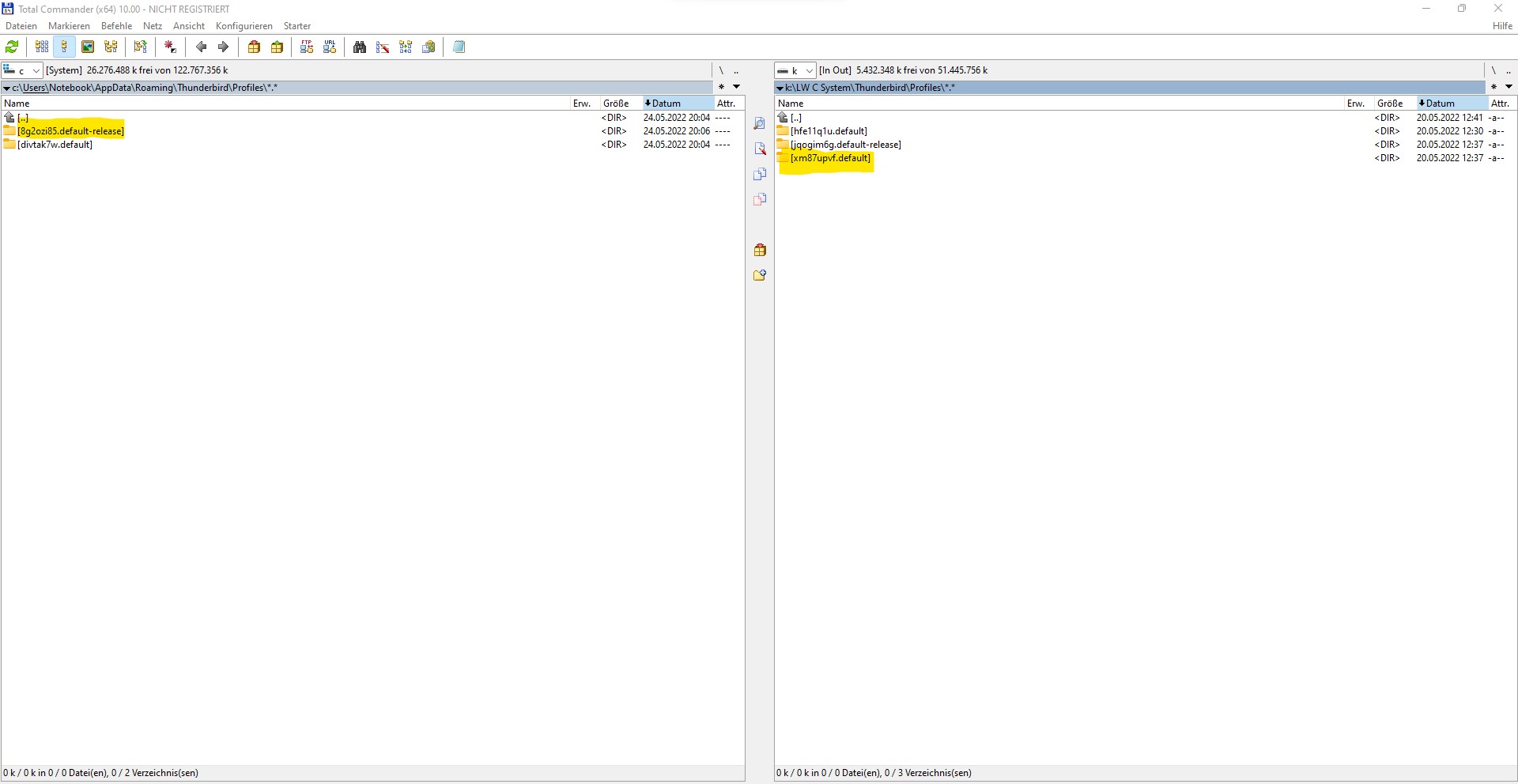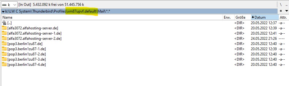 leider hatte mein normaler 'Hauptrechner' einen Absturz, er reagierte unter Win11 gar nicht mehr. Mittels Linux konnte ich jedoch - mit mächtig Aufwand - noch alle Partitionen auf eine externe FP retten. So auch die relevanten Dateien aus dem TB Profile Verzeichnis.
