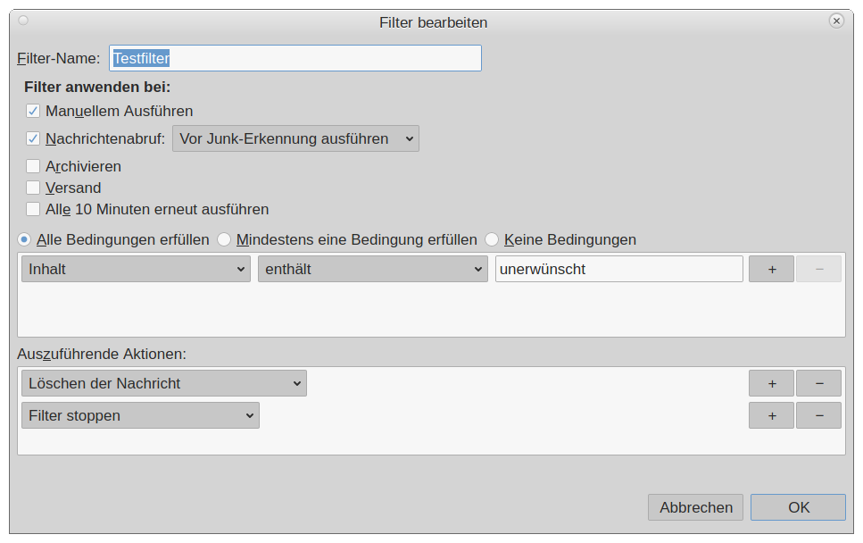 ist es möglich verschiedene Wörter einzutragen damit er Emails die diese Wörter enthalten sofort löscht?