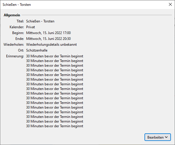 seit Neuestem wird mir ein Serientermin für ein und denselben Tag 10 Mal angezeigt.