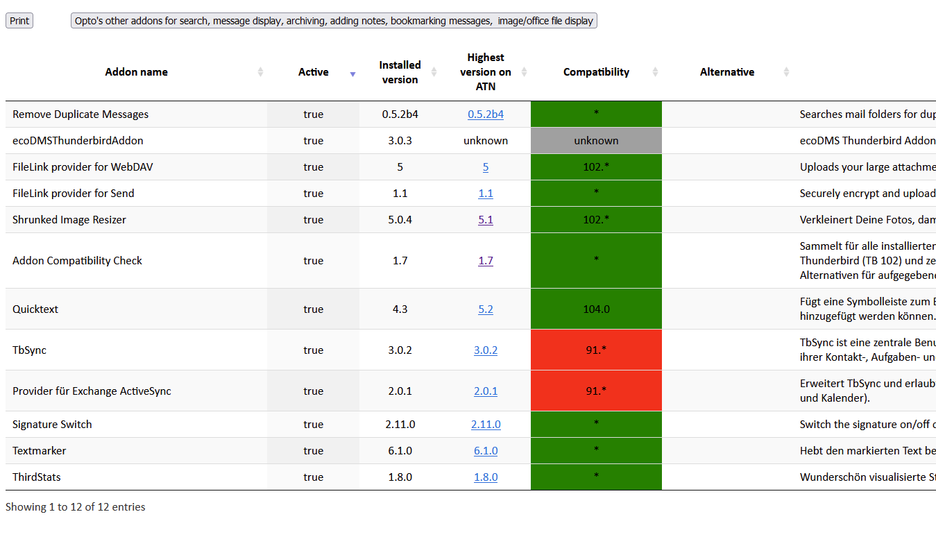 Status Add-on Kompatibilität mit Thunderbird 102