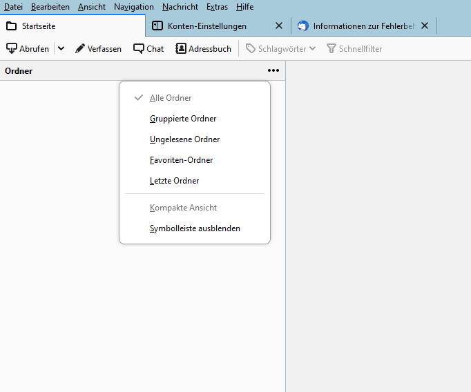 Nach automatischem Update auf 91.11.0 sind die Ordner nicht mehr sichtbar , ansonsten funktionieren die Konten alle noch