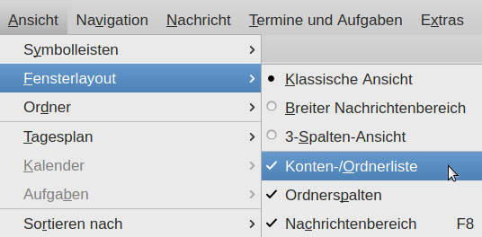 Ordnerspalten läßt sich nicht aktivieren und nachrichtenbereich auch nicht