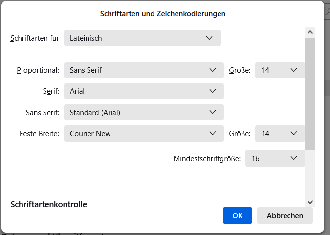 Nachdem die Konfiguration der Schriftarten/-größen unter Thunderbird immer wieder für Verwirrung und Frustration sorgt, hier der Versuch, etwas Licht in das Dunkel zu bringen.