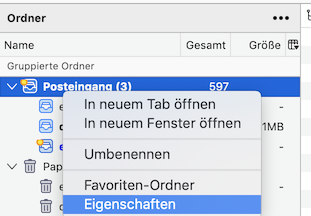 - Rechtsklick auf den virtuellen "Posteingang" (also den aus "Gruppierte Ordner")