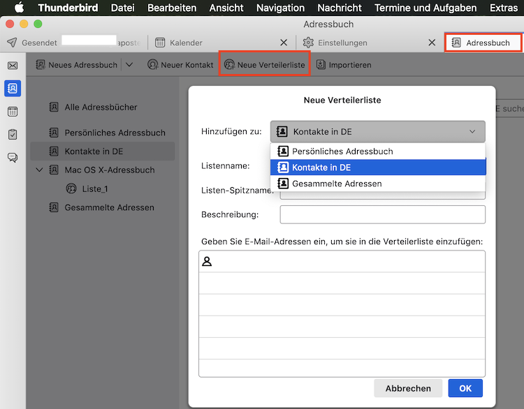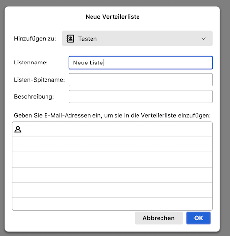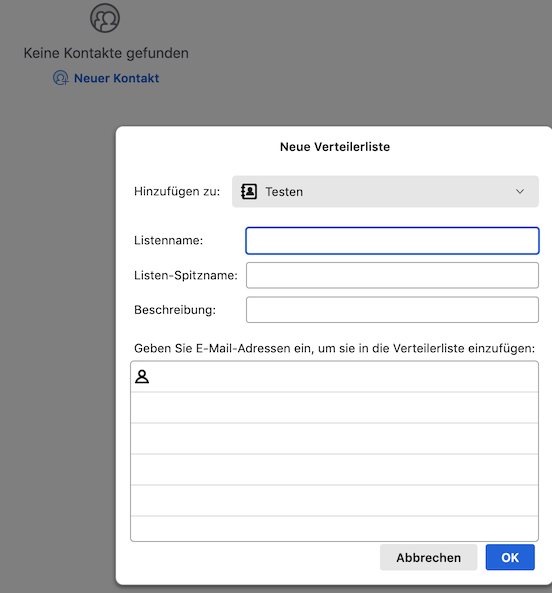 Ich kann im Adressbuch mehrere Personen auswählen und dann erscheint im rechten Fenster über den ausgewählten Kontakten auch die Schaltfläche „Listen“ aber wenn ich die anklicke passiert nichts.