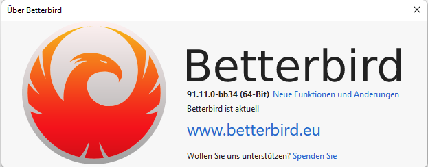 Wenn ich allerdings in meinen Betterbird schaue, ist die Version 31.11.0-bb34 noch aktuell
