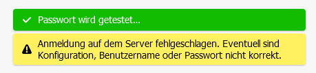 "Anmeldung auf dem Server fehlgeschlagen. Eventuell sind Konfiguration, Benutzername oder Passwort nicht korrekt."