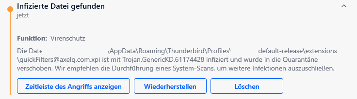 Melde Dich bitte auf jeden Fall beim Autor Axel Grude und informiere diesen, damit er Dir Rückmeldung geben kann: https://quickfilters.quickfolders.org/